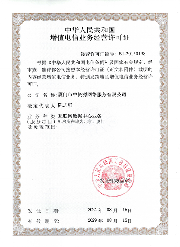 高資質高品質的互聯網基礎服務提供商 廈門中資源在線信息技術有限公司版權所有·嚴禁復制 增值電信業務經營許可證:B1-20150198網站備案號:閩ICP備17004817號互聯網域名服務許可證:閩D3.1-20240002閩公網安備 35020302000110號